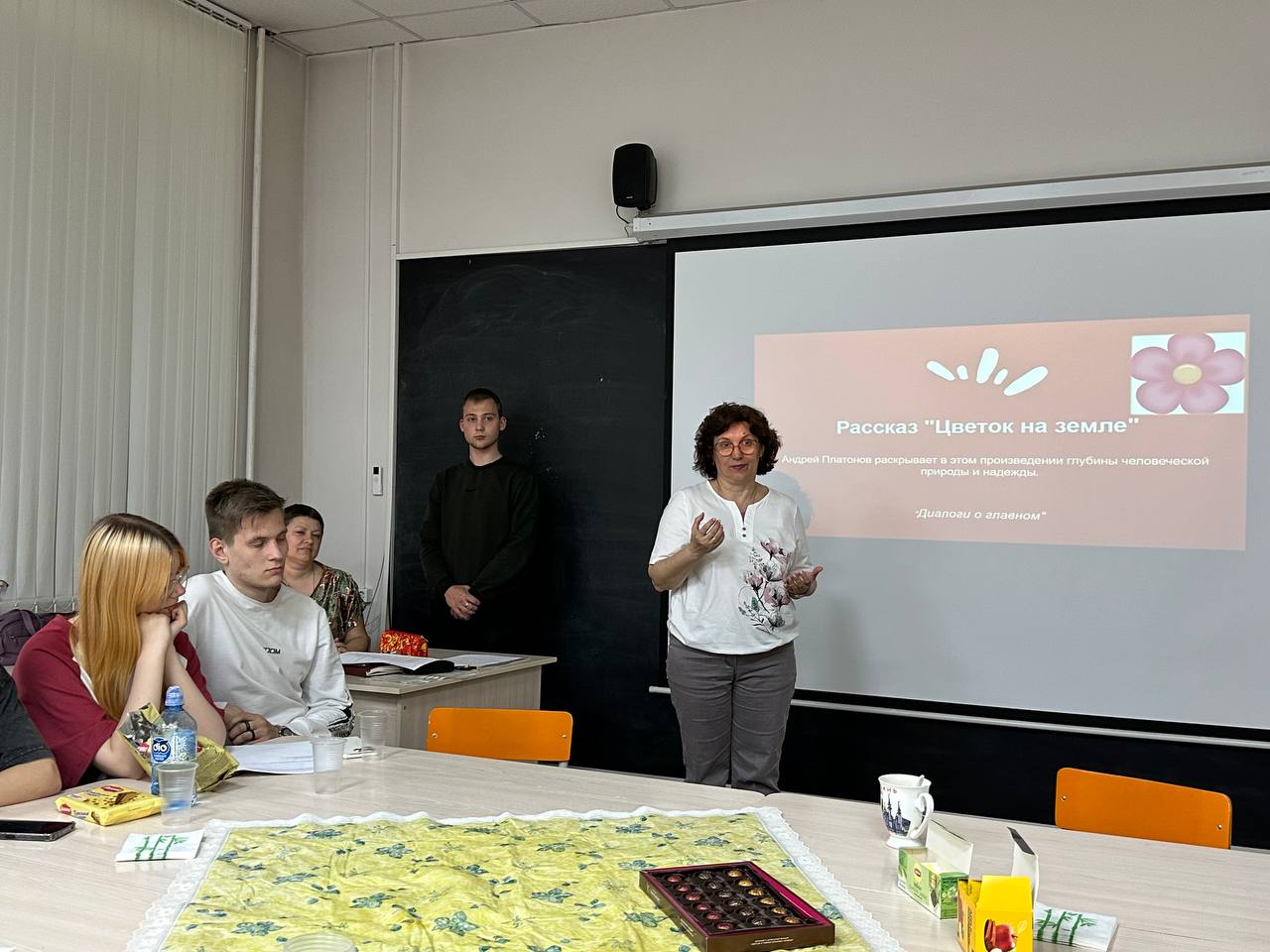 Аксиологическая неопределённость современного мира способствует появлению многих психологических проблем у современного человека: аномия, ресентимент, депрессивность и т.д. Участники научной дискуссии слушали и обсуждали мнения таких ученых, как Наталья Яковлевна Большунова, доктор психологических наук, профессор ФГБОУ ВО НГПУ, г. Новосибирск; Елена Константиновна Веселова, доктор психологических наук, профессор РГПУ им А.И. Герцена, г. Санкт-Петербург; Ольга Анатольевна Устинова, кандидат психологических наук, доцент кафедры ПиОП КГПИ КемГУ, по проблеме нравственности личности. Психологи – это специалисты помогающих профессий. Поэтому, в первую очередь, специалист встречается с вопросом нравственности как имеющего отношение к духовным ценностям, противоположного телесному, плотскому. Человек своими созерцательными действиями, руководствуясь нравственными ценностями добра, преображает мир. И как пишется в обсуждаемом рассказе Андрея Платонова «Цветок на земле»: счастливые цветы, поднявшие к небу свои добрые лица, дышат «чистым духом в белый свет», так и душа человека, стремясь к высшим ценностям, становится красивой и доброй!