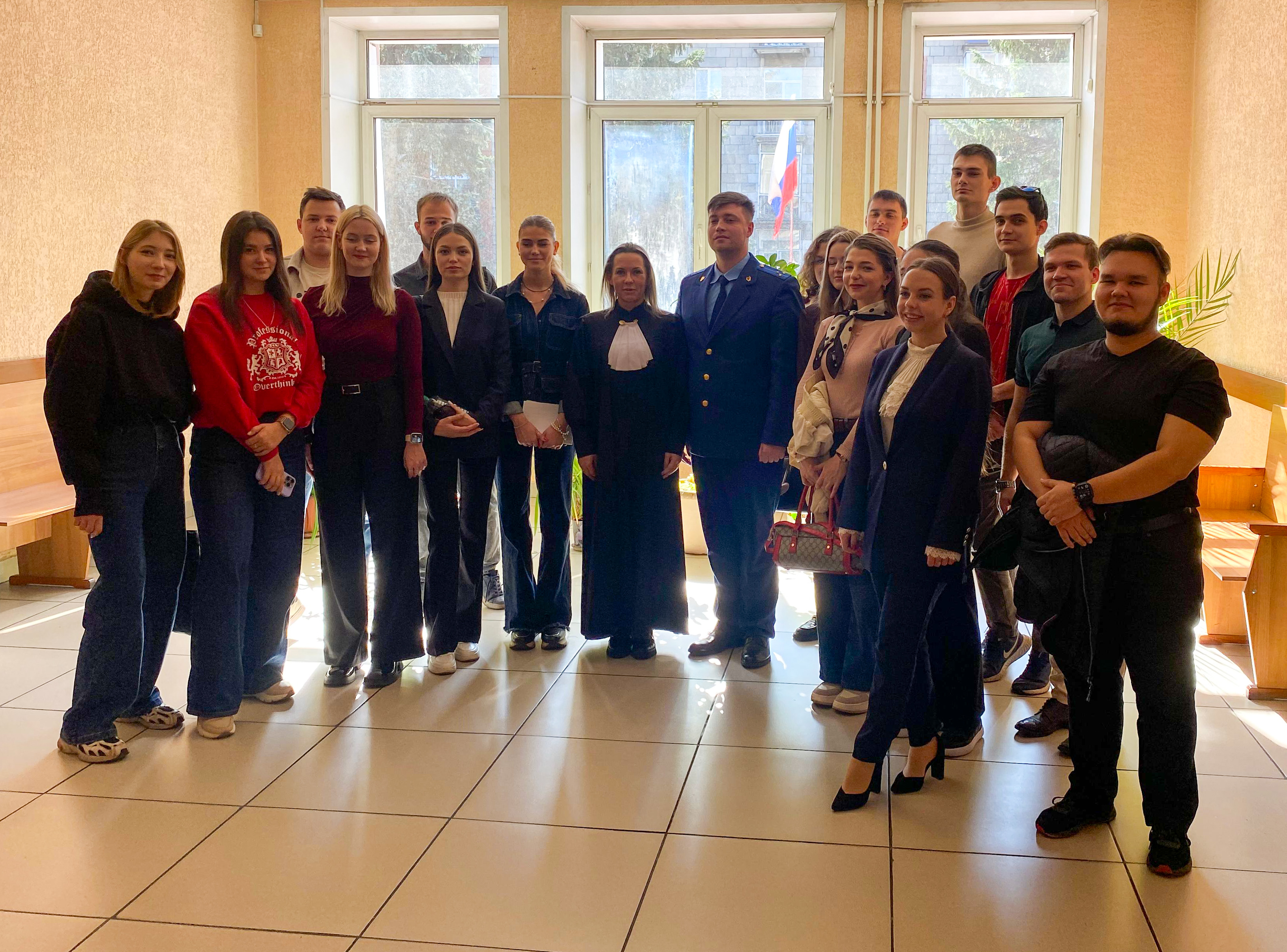 В минувший четверг, 25 сентября 2025 г., студенты 5 курса, обучающиеся по специальности «Судебная и прокурорская деятельность» (специализация – «Судебная деятельность»), посетили с экскурсией Новокузнецкий районный суд Кемеровской области. Будущие юристы получили возможность поприсутствовать при рассмотрении гражданского дела под председательством судьи Жегловой Н.А.
