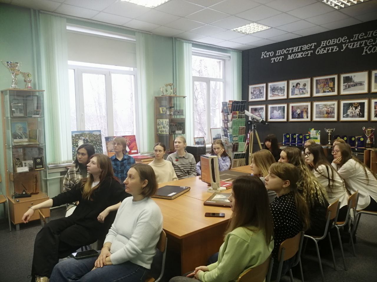 Участники познакомились с ключевыми этапами развития вуза, от Сталинского учительского института 1939 года до современного КГПИ КемГУ. Особое впечатление произвела музейная экспозиция: учебные пособия, научные приборы, предметы быта советской эпохи и воссозданный кабинет ректора 50–60-х годов, позволяющий ощутить атмосферу прошлых десятилетий.