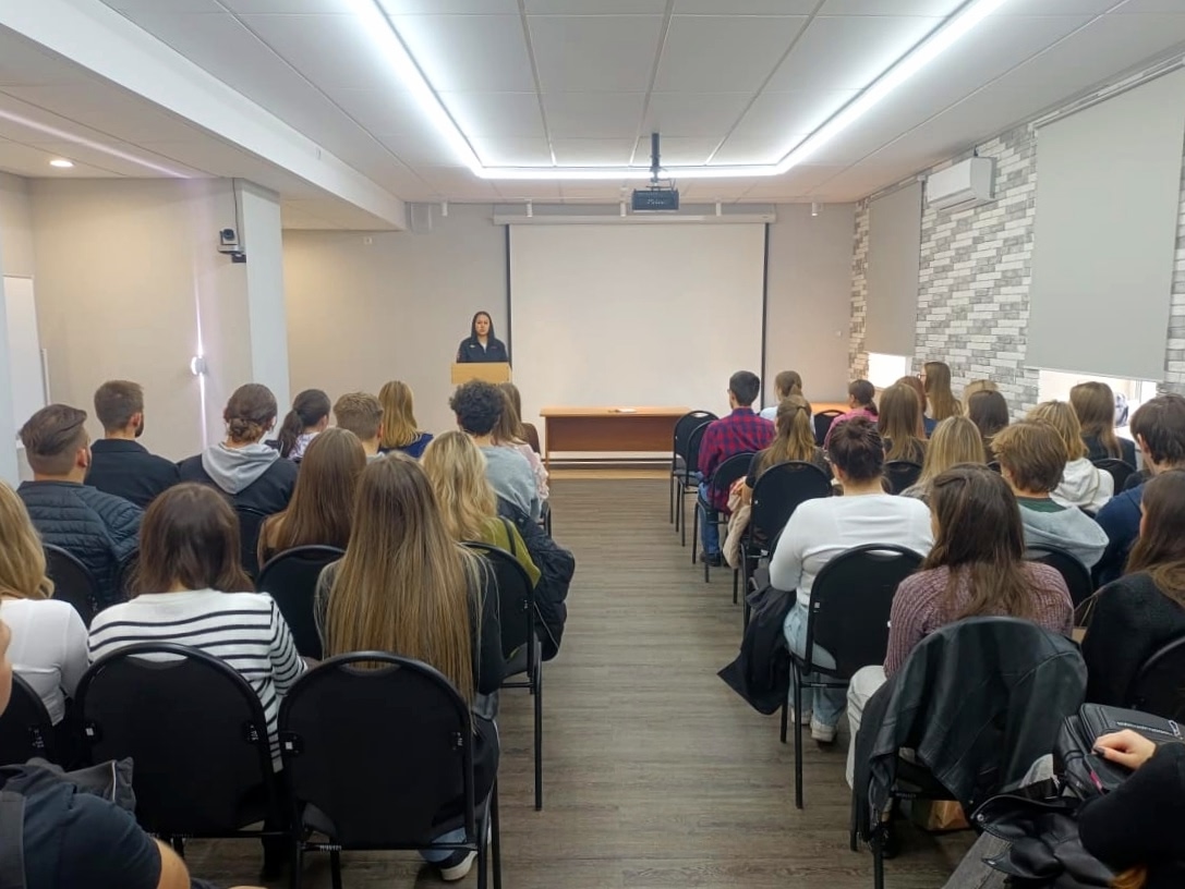 В среду, 24 сентября 2025 г., на факультете истории и права КГПИ КемГУ состоялась встреча студентов выпускного курса, обучающихся по направлению «Юриспруденция» (профили – гражданско-правовой, уголовно-правовой) и специальности «Судебная и прокурорская деятельность» (специализация – судебная деятельность), с заместителем начальника отдела (курирующего РЛС) ОП «Орджоникидзевский» Управления МВД России по г. Новокузнецку, майором полиции А.С. Скулкиной.