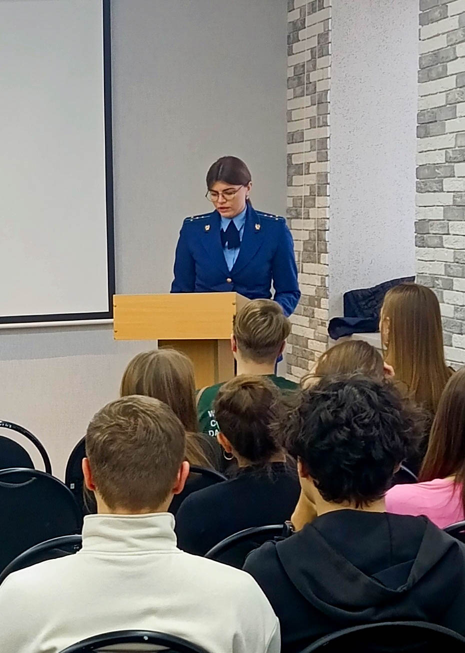 В минувшую среду, 3 декабря 2025 г., прошла встреча студентов старших курсов факультета истории и права КГПИ КемГУ с помощником Новокузнецкого межрайонного природоохранного прокурора, юристом 2 класса Кармановой Кристиной Евгеньевной.